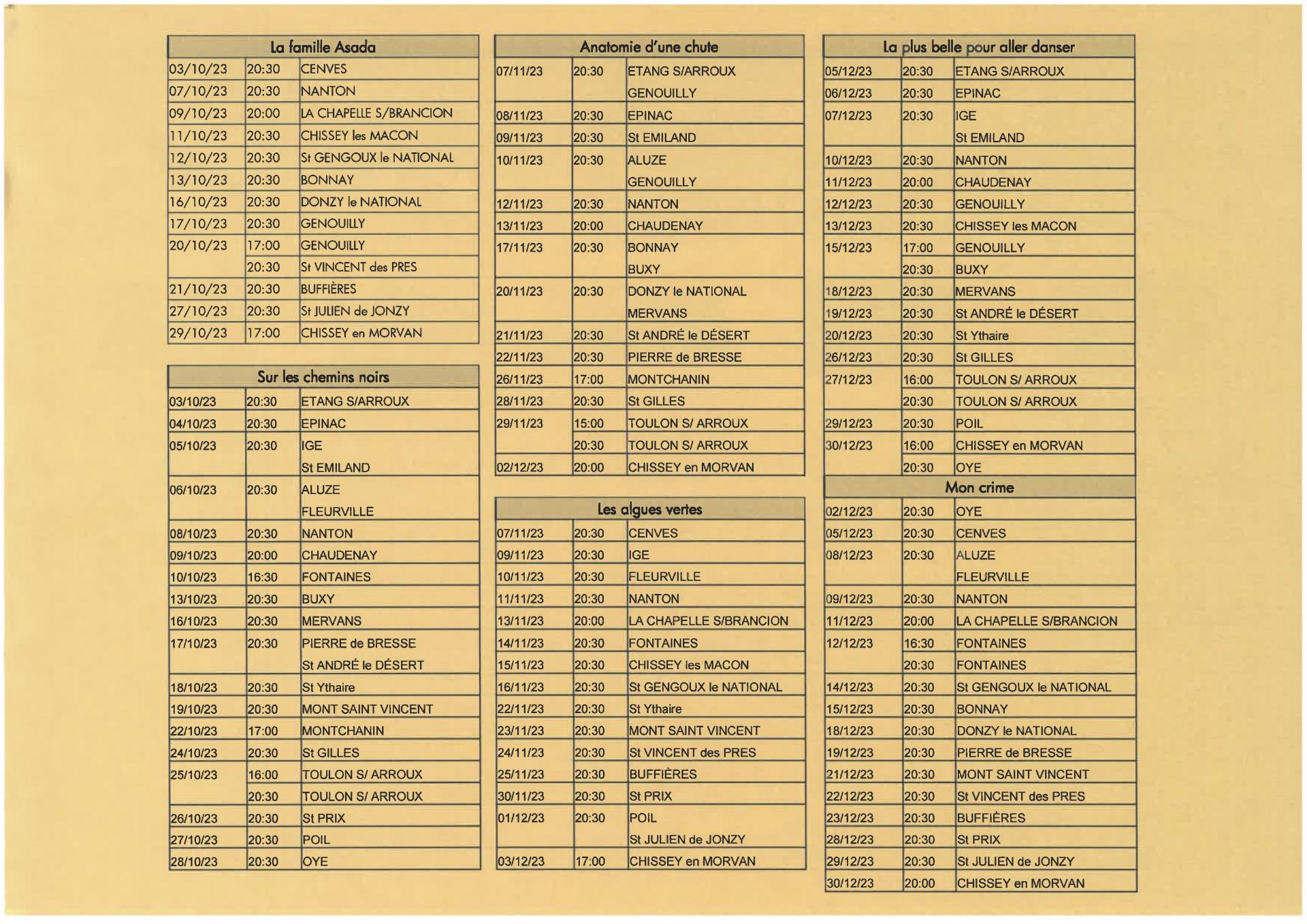 Programme du 4ème trimestre 2023