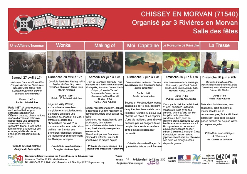 Boissons disponibles à la vente avant et après le film proposés par les bénévoles de 3 Rivières en Morvan